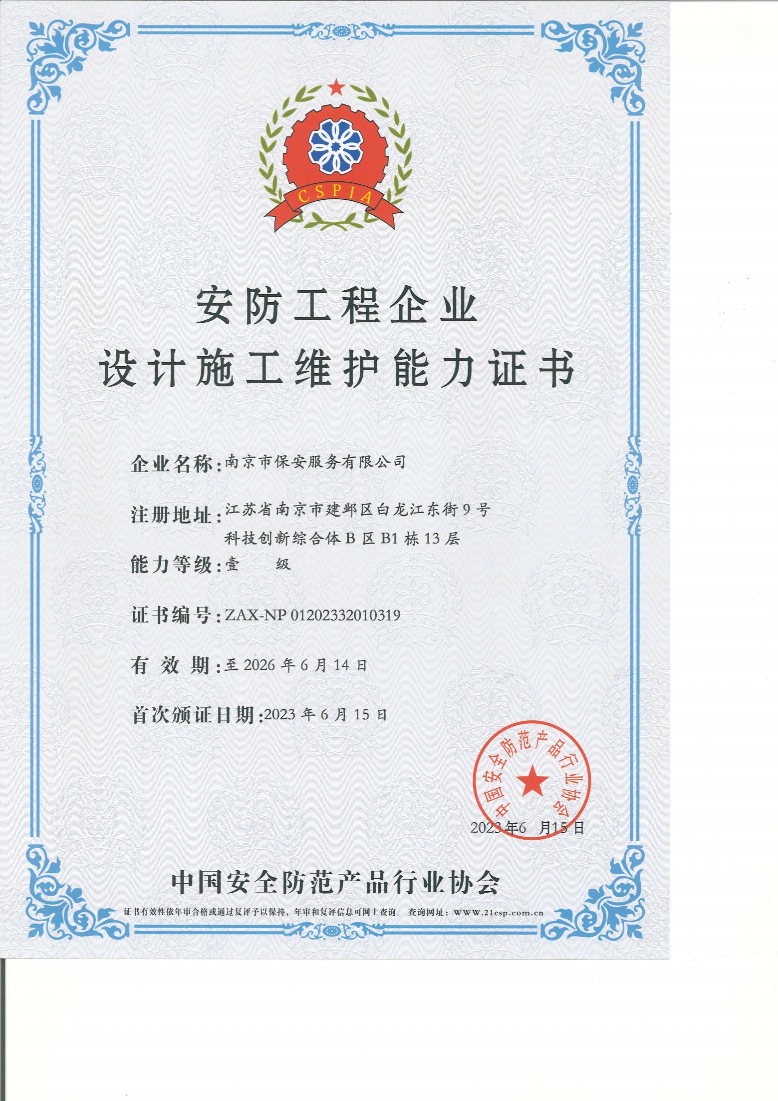安防工程企業(yè)設(shè)計(jì)施工維護(hù)能力證書(shū)(一級(jí))