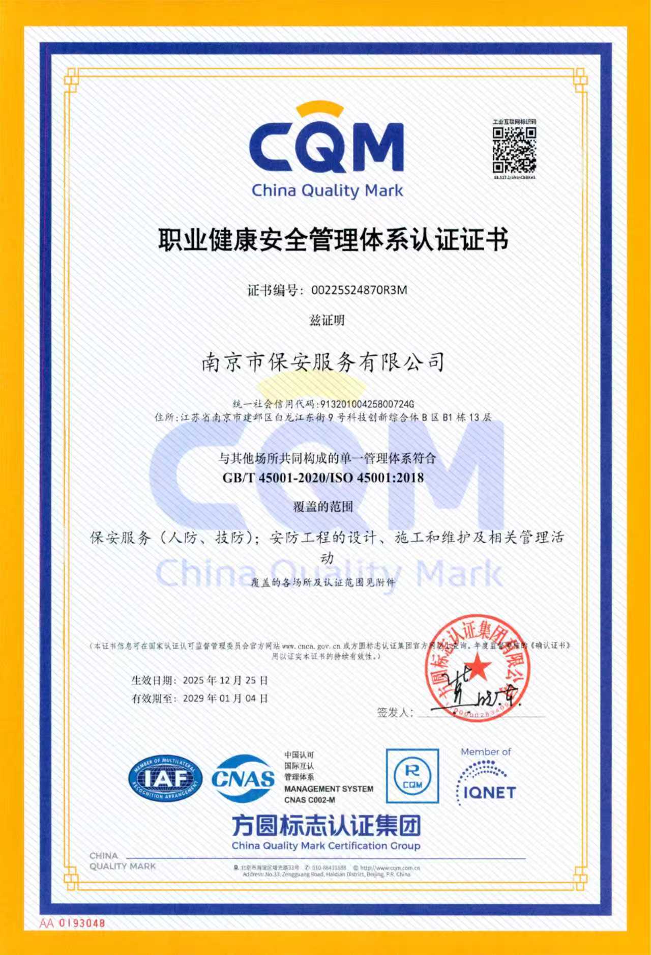 職業(yè)健康安全管理體系認(rèn)證證書(shū)