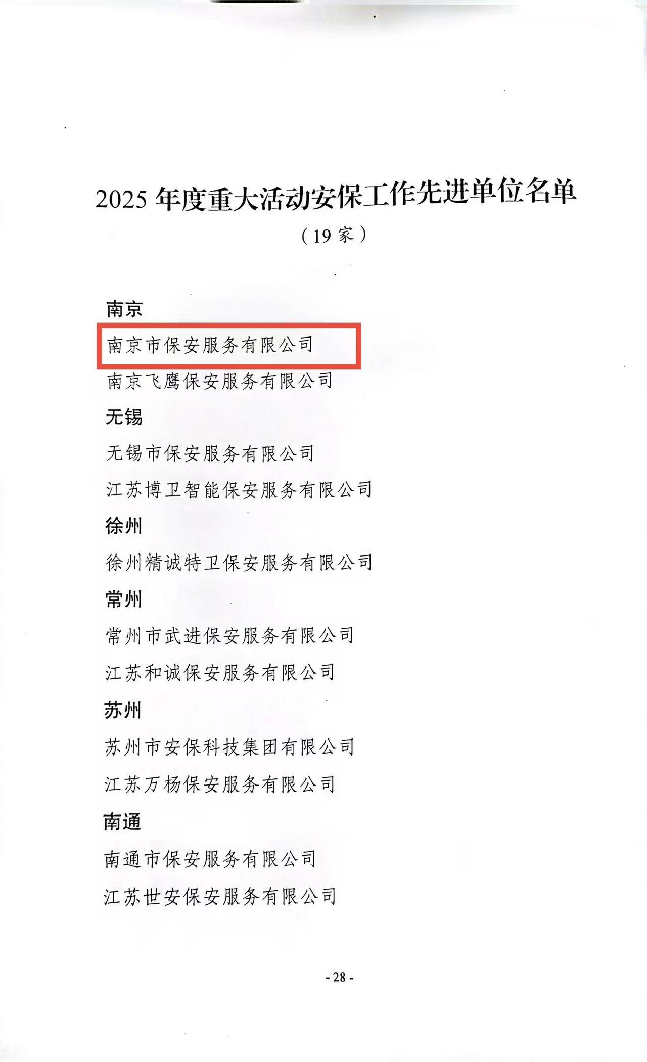 喜報!南京市保安服務(wù)有限公司榮獲“2025年度重大活動安保工作先進(jìn)單位”稱號